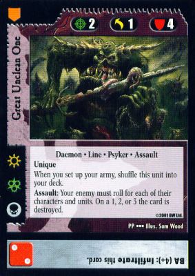 The main challenge is to decide whether or not to play Vyridion over one of the absurd non-flag units Chaos can access. Despite this, I’m testing a couple in my own Chaos deck for the high die roll and the firepower bonus versus tough, mass-destruction units like Jainan and the Avatar.