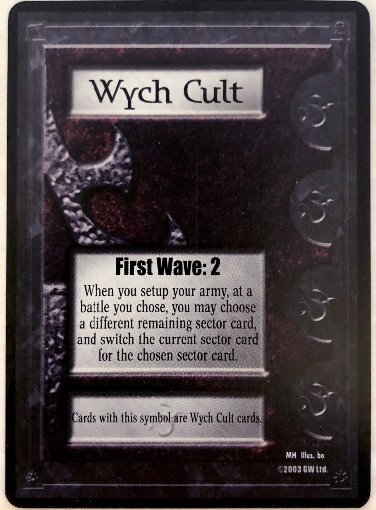 I recently put together a Wych Cult deck and I’ve been having quite a bit of fun with it. Wych Cult plays a little differently than other races, although many aspects of its gameplay feel familiar. First, let’s take a look at the Wych Cult fleet card: