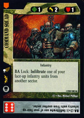 The humble infantry squad forms the core of this deck. Individually, they are rather mediocre. The ideal statline for your rank-and-file troop should be 2/2/3, which is OK but hardly impressive. Your infantry support units are even worse, boasting 2/2/1, 1/2/1 or 0/2/1 statlines. Your troops are generally frail, and alone don’t pack much of a punch. So, why play them?