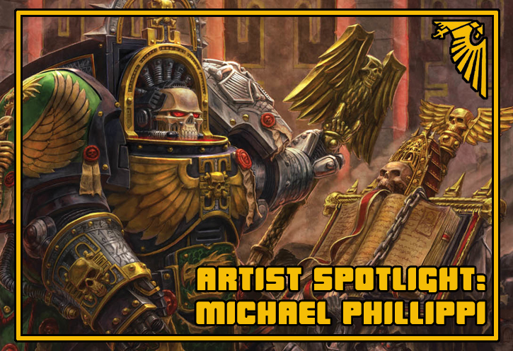 The Warhammer 40K CCG came to life thanks to the artwork of many talented artists. Michael Phillippi is one such artist. His work is prominently featured in every set, as well as on the game’s product packaging and other promotional materials.