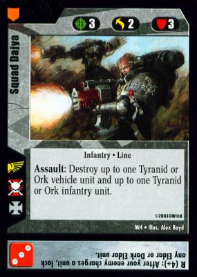 Evaluating a 40K CCG card generally starts with analyzing the usefulness of the card both on the battlefield and in your command hand. A card can be fantastic on the battlefield, but an utter dud in your hand. Case in point: Squad Gathris.