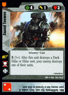 Squad Gathris appears to be a (flavorful) attempt to give Space Marines a boost against Chaos. It can rally easily to kill multiple Chaos units, or dive onto the battlefield from your hand to take out that Greater Daemon (or Avatar) with ease. If you’re a Space Marines player up against a Chaos opponent, Squad Gathris is a no-brainer.