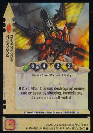The artwork for this game is amazing. The overall quality is much, much higher than in the original 40K CCG, and as an Eldar player I am in love with so many of the pieces they used.