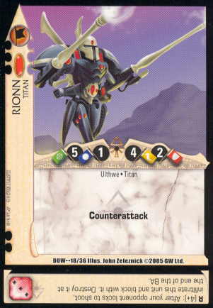 With the exception of Eldar, I find cards much harder to read than the original 40K CCG. This is exacerbated by the fact that cards in general have a lot more card text on them.