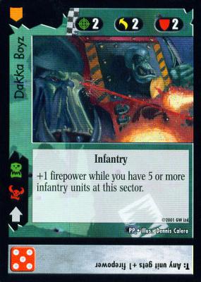 I haven’t played against any of them in a long time, but I prefer the Ghazkull’s Waaagh! fleet card too for the tonnes of card advantage. I think the Da Kult of Speed is too reliant to tactics and synergy to achieve mediocre results (unless they are shooting Imperial Guard). Boosting the firepower of FP 0 Stormboyz to get counterattack seems inefficient. I hope to test this out soon.