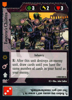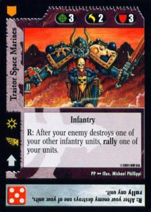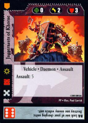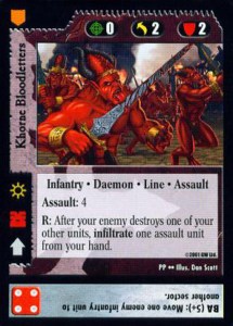 I looked at the archived old Sabertooth Games forums and I found a discussion I participated in about Khorne Flesh Hounds. My verdict then is the same as now: they are bad, especially without card drawing support or lots of Greater Daemons. And even then, I am skeptical of a non-flag unit with die roll 2, armour 2, and only the ability to 2 infiltrate assault units (which would require an assault-based deck to make it worthwhile).