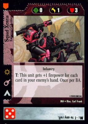 • Squad Xenris is initially attractive, but dumb. It is easily blocked and probably won’t hit high firepower on anything useful.