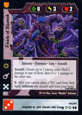 Fiends of Slaanesh: They can 2-for-1 in assault, punish BA commands with infiltration, and they have a better command line than Khorne Flesh Hounds. Fiends of Slaanesh does not have a high die roll, but at least it can pass its own tests!