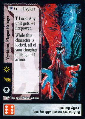 Vyridion, Plague Bringer: All his abilities seem good for a balanced deck, but he has had little impact on the battlefield in practice.