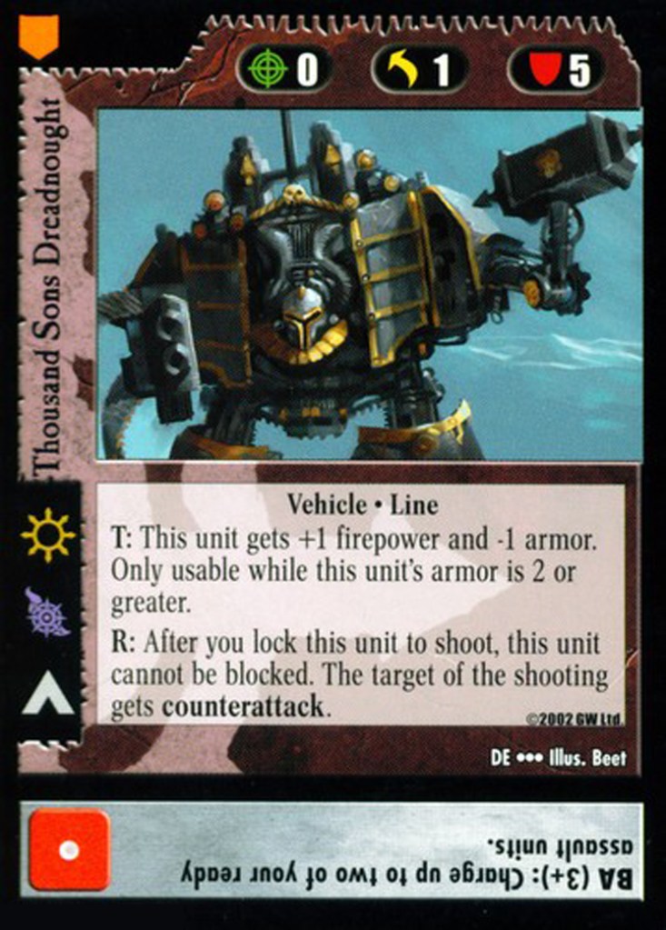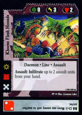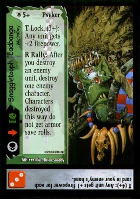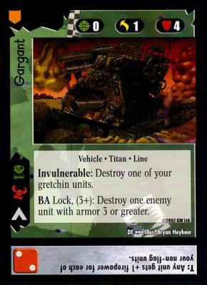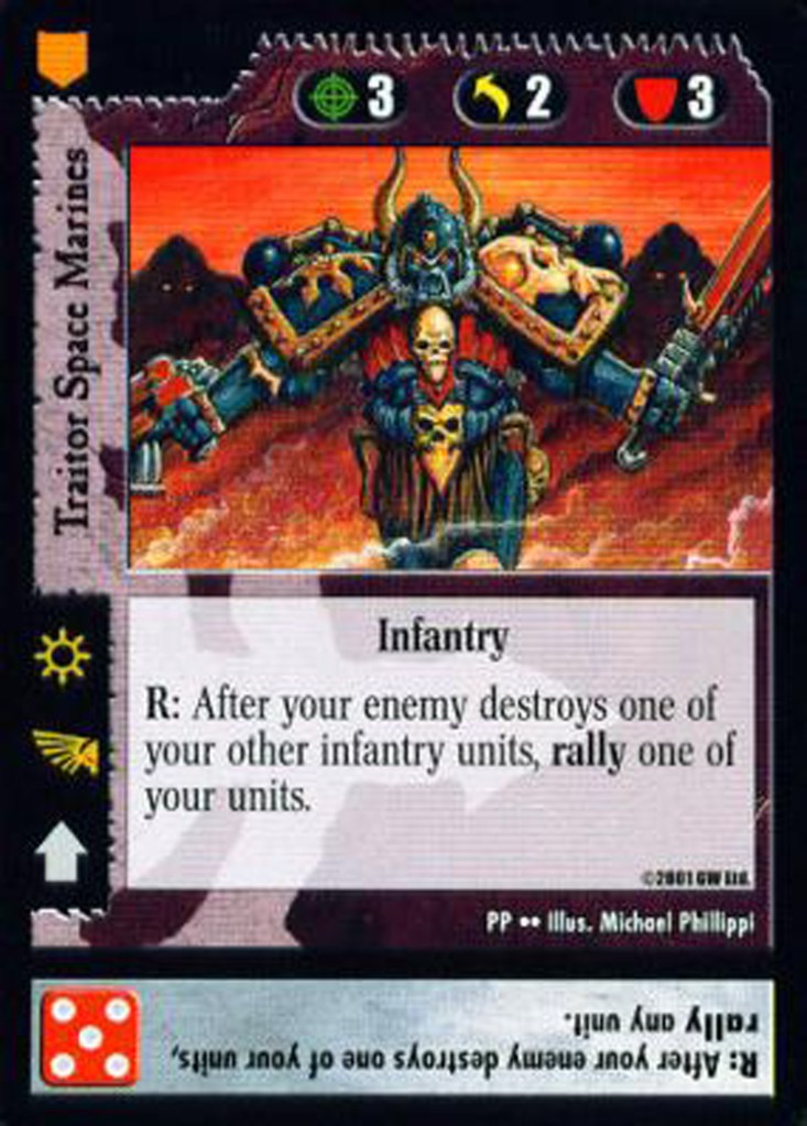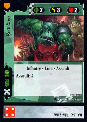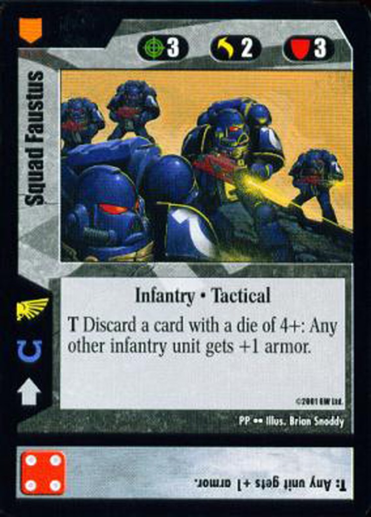 The comparison between Magic and the 40K CCG breaks down even further when you consider that each 40K card is essentially three separate cards: the unit, the die roll, and the command line. You are evaluating each card on three axes, and as such, there should be two lenses through which you should evaluate each card: at the micro level, and at the macro level.