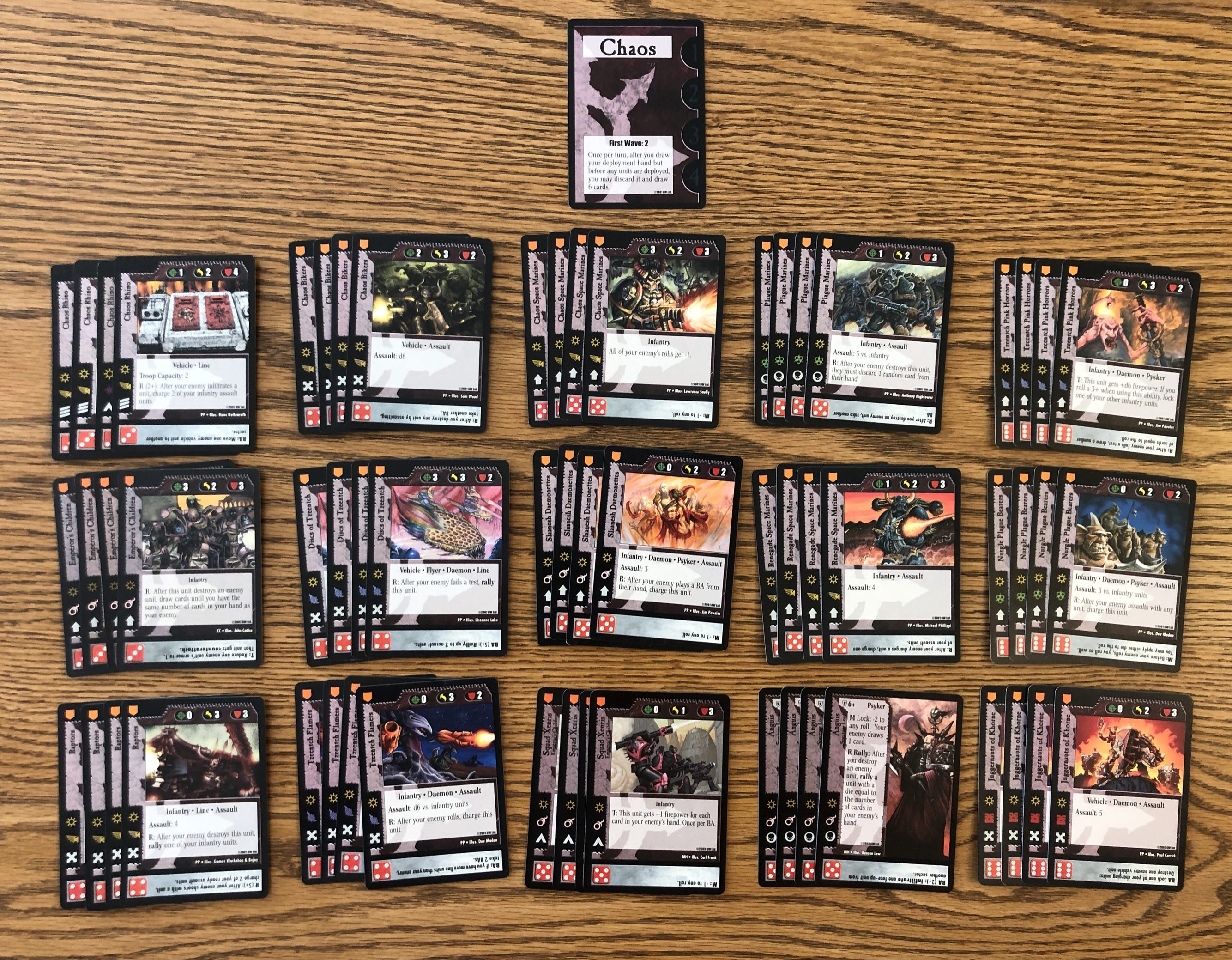 Solid units, high rolls, and plenty of reactions and die modification, this Chaos deck can react to anything your opponent throws your way.