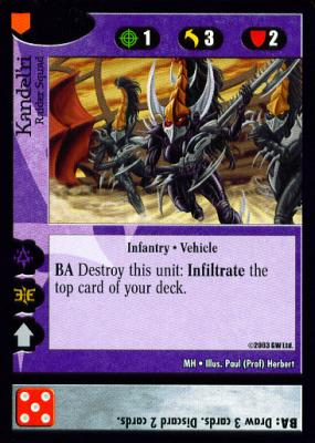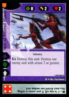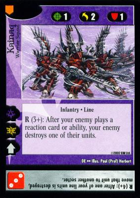 Upon first glance, it’s clear that Dark Eldar is a race that needs to be played with extreme care. While you are essentially playing with a 3-card command hand at each battle (there’s very little reason not to infiltrate a card), you are always the defender in games, and if you fight two battles each turn, you have a pseudo-First Wave of 2 with the added benefit of choosing your “First Wave” deployment from four cards each battle.